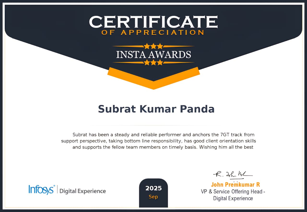 In my current role as a Technology Analyst at Infosys Ltd. in Bhubaneswar, I serve as an